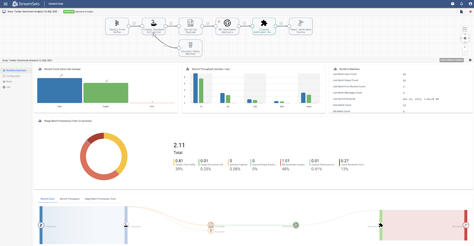 In this blog post, I’ve highlighted the integration between Microsoft SQL Server 2019 Big Data Cluster and StreamSets DataOps Platform to perform sentiment analysis on streaming data.