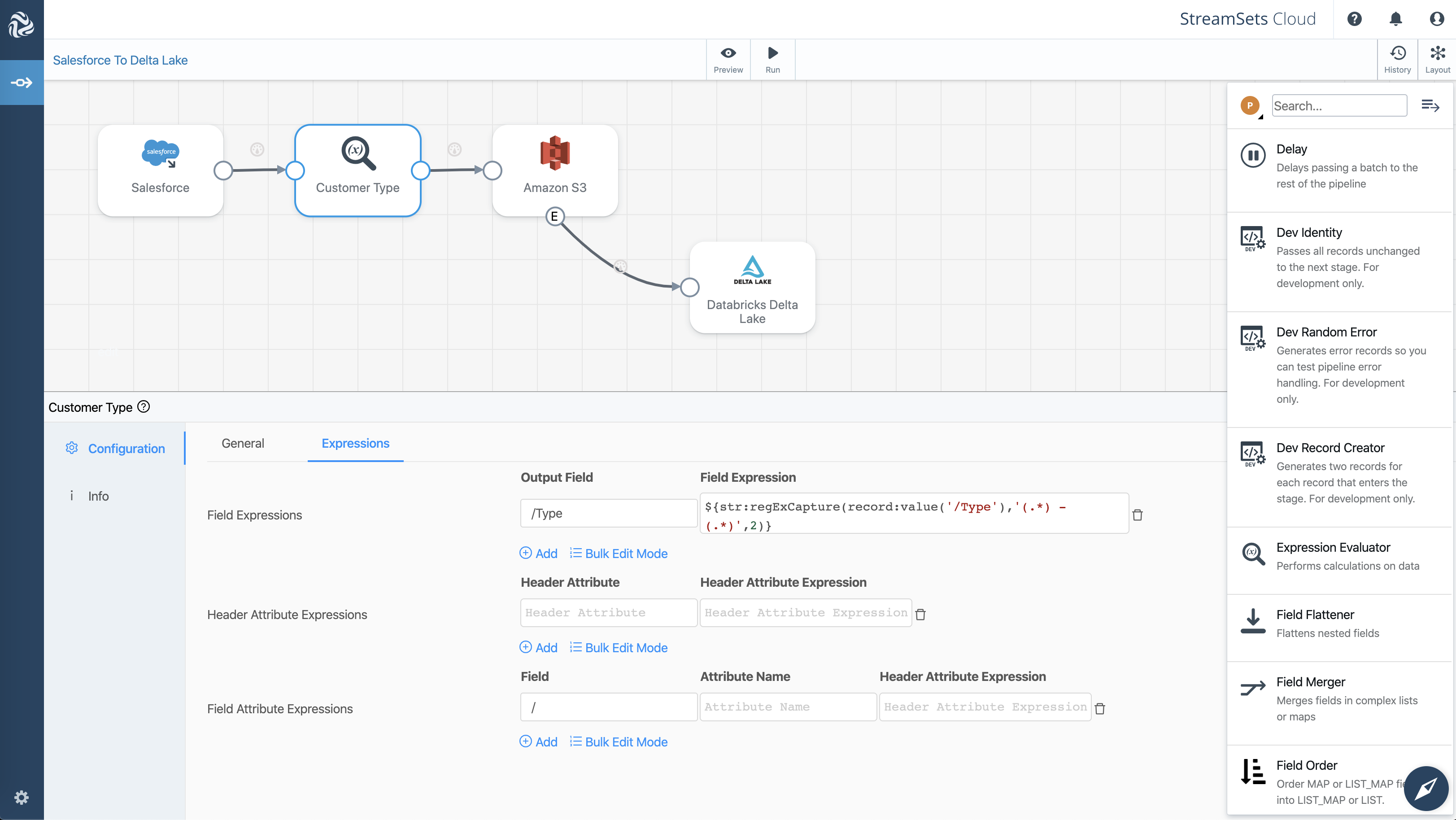 StreamSets is proud to announce an expansion of its partnership with Databricks by participating in Databricks’ newly launched Data Ingestion Network. As part of the expanded partnership, StreamSets is offering additional functionality for StreamSets Cloud with a new connector for Delta Lake, an open source project that provides reliable data lakes at scale. The StreamSets Cloud service provides an integrated, cloud-based user experience for designing, deploying and monitoring your pipelines across your entire organization. A key component of this integration is leveraging the newly released Databricks COPY command for bulk ingest into Delta Lake using the StreamSets Cloud service.